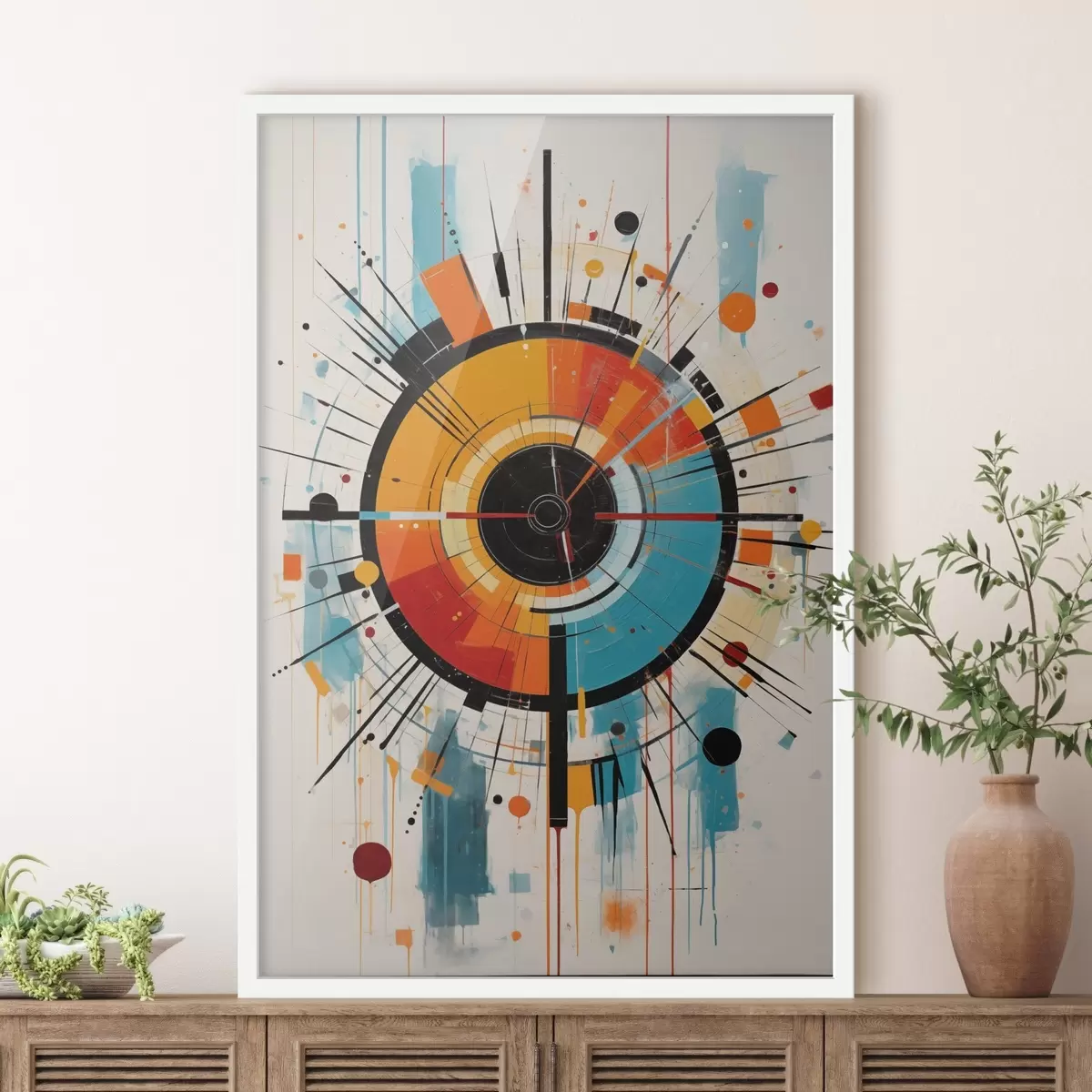 Poster Radialer Ausbruch in Blaugrün, Orange und Schwarz f46485