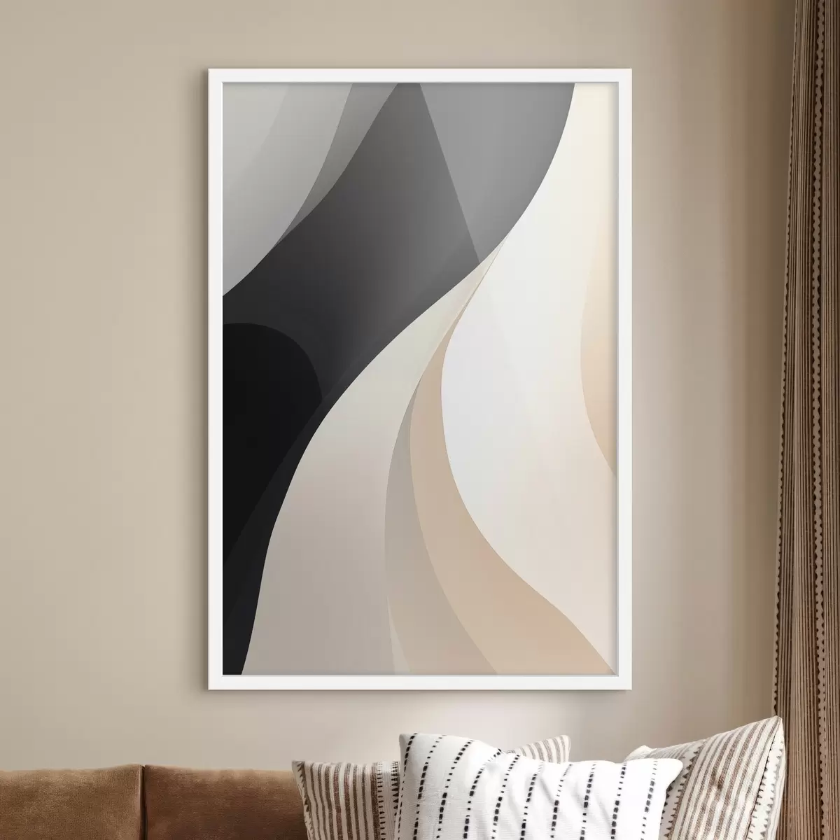 Poster Elegante, sich überlappende Kurven in Anthrazit, Elfenbein und Sand Nr f46493
