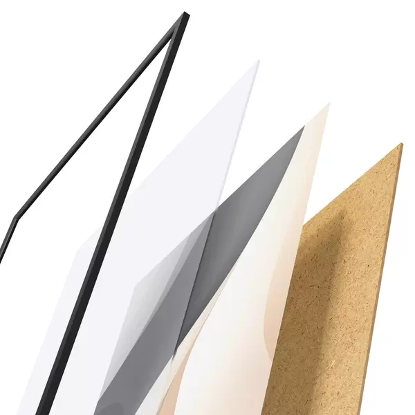 Das Poster besteht aus einem Rahmen, Plexiglas, einem gedruckten Bild und einer Rückwand aus Spanplatten. Dank der Halterungen auf der Rückseite kann das Poster sofort an die Wand gehängt werden.