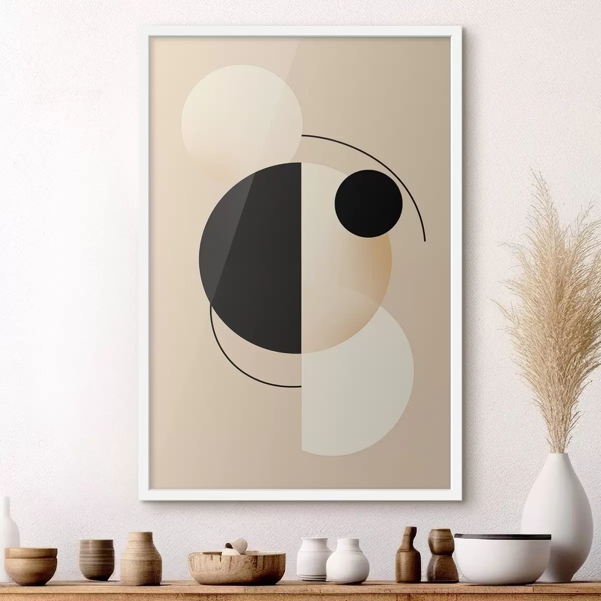 Poster Grafische Kreise und Bögen in sanftem Beige und Schwarz Nr f46497