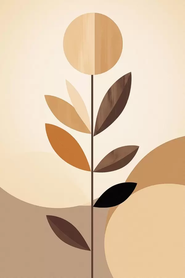 Poster Stilisierte Blume mit geometrischen Blättern in warmen Farbtönen Nr f46500