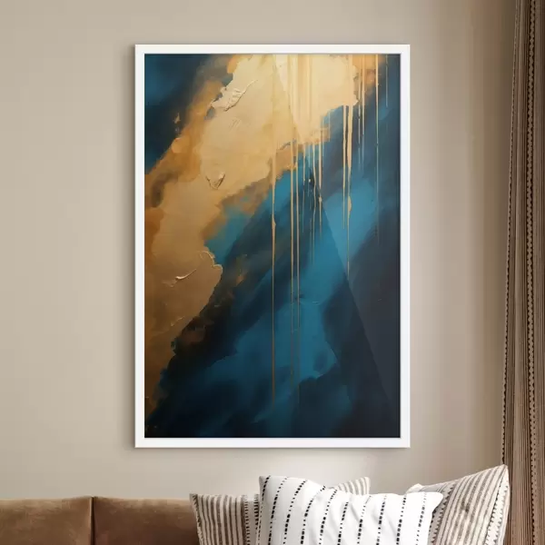 Poster Teal und tiefblaues Abstraktes mit fließenden warmen Akzenten Nr f46509