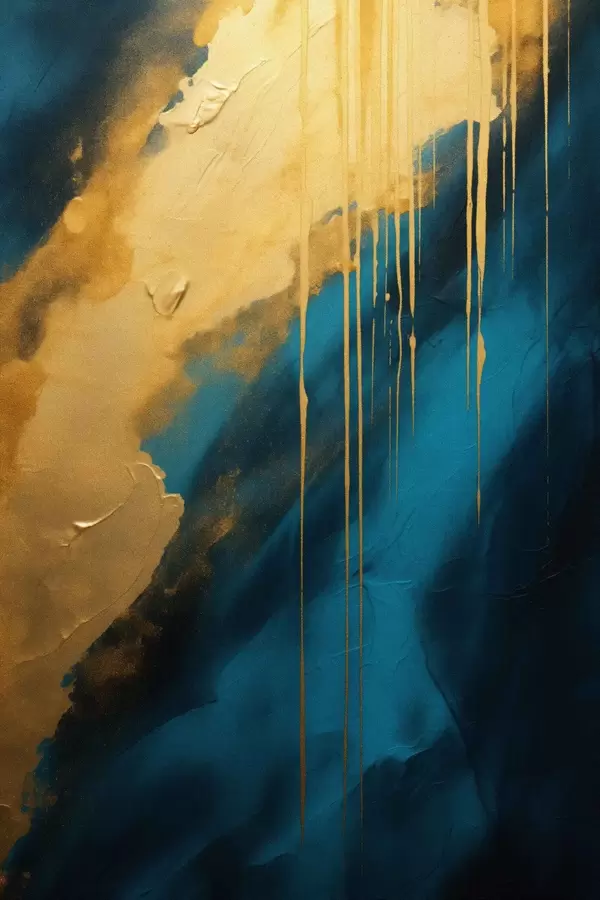 Poster Teal und tiefblaues Abstraktes mit fließenden warmen Akzenten Nr f46509