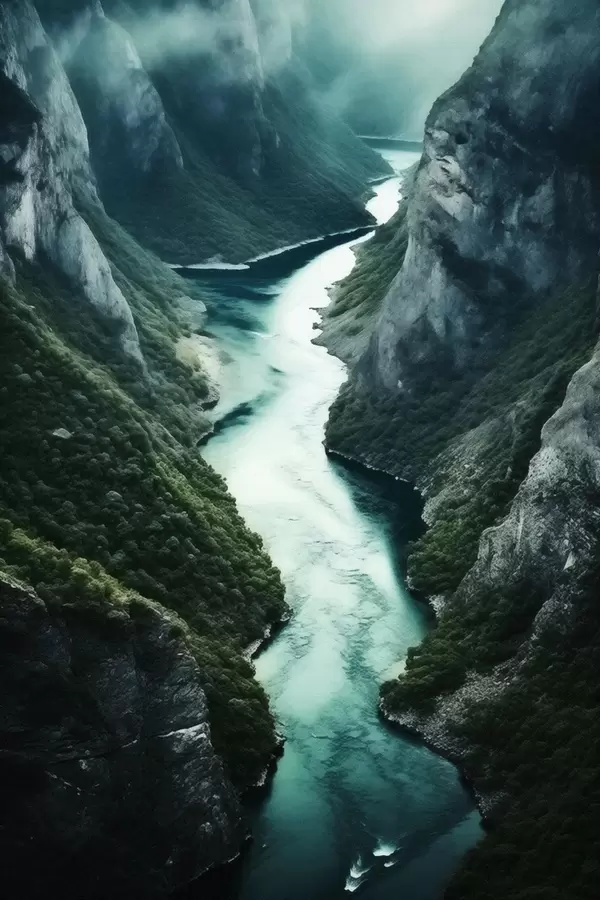 Poster Enge Schlucht mit türkisfarbenem Wasserstrom von oben Nr f46522