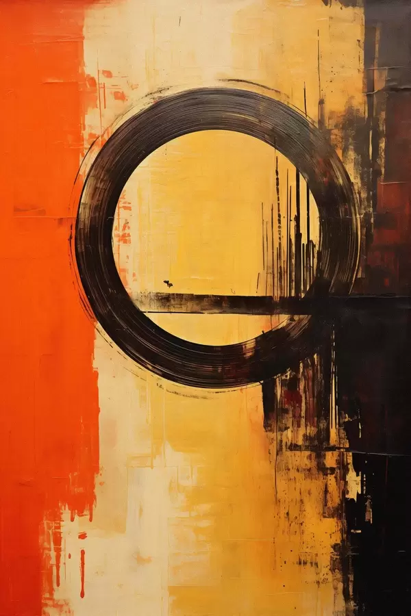 Poster Abstraktes Motiv mit schwarzem Ring auf terrakottafarbenem Sandhintergrund Nr f46529