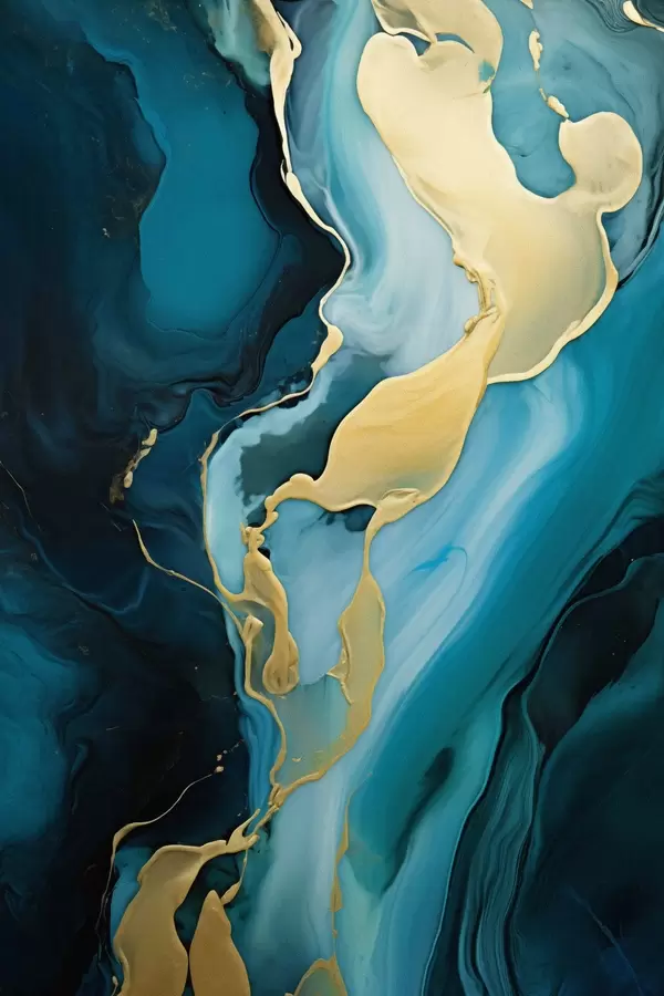 Poster Tealblaues Abstraktes mit einem ockerfarbenen Strom f46530