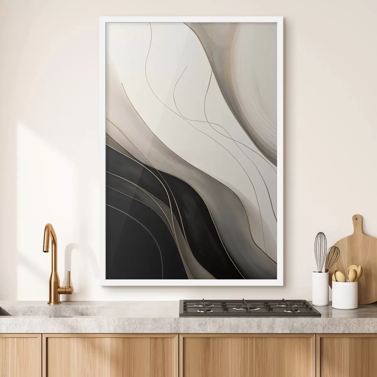Poster Wellen in Schwarz und Beige mit feinen ockerfarbenen Linien Nr f46541