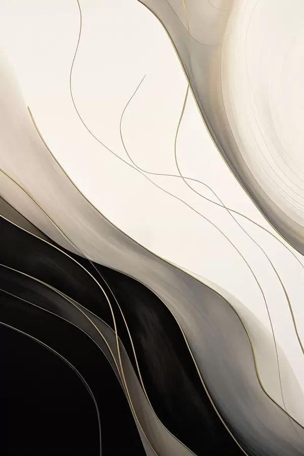 Poster Wellen in Schwarz und Beige mit feinen ockerfarbenen Linien Nr f46541