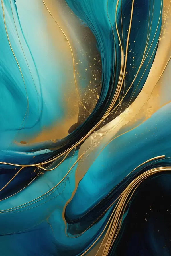 Poster Türkisfarbener Fluss mit dünnen ockerfarbenen Fäden Nr f46543