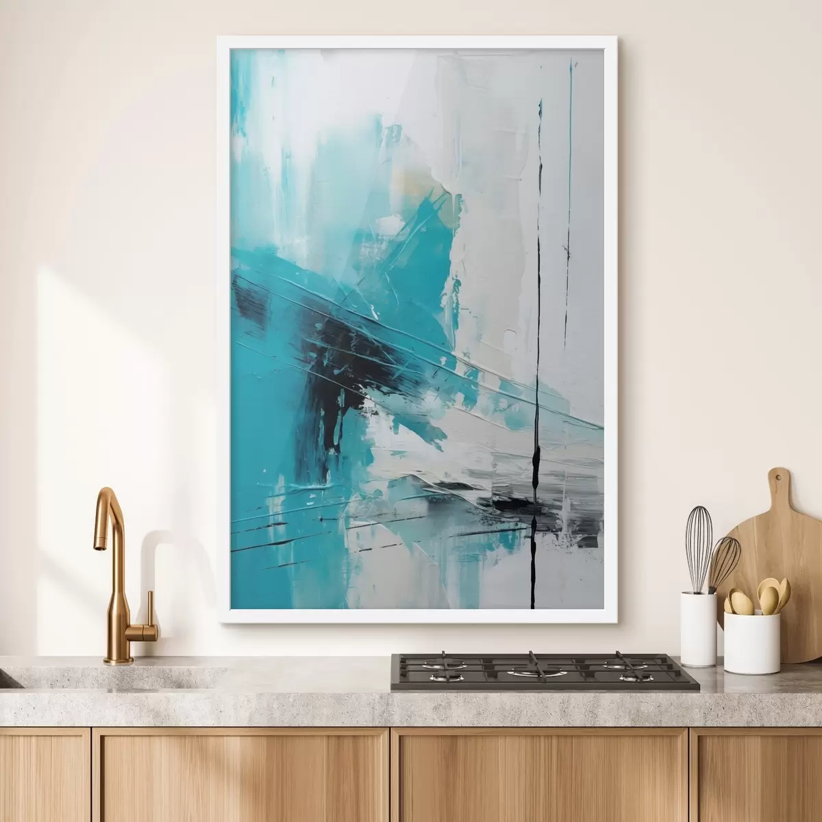 Poster Türkisfarbene Striche auf Weiß mit einem schwarzen Strich Nr f46545