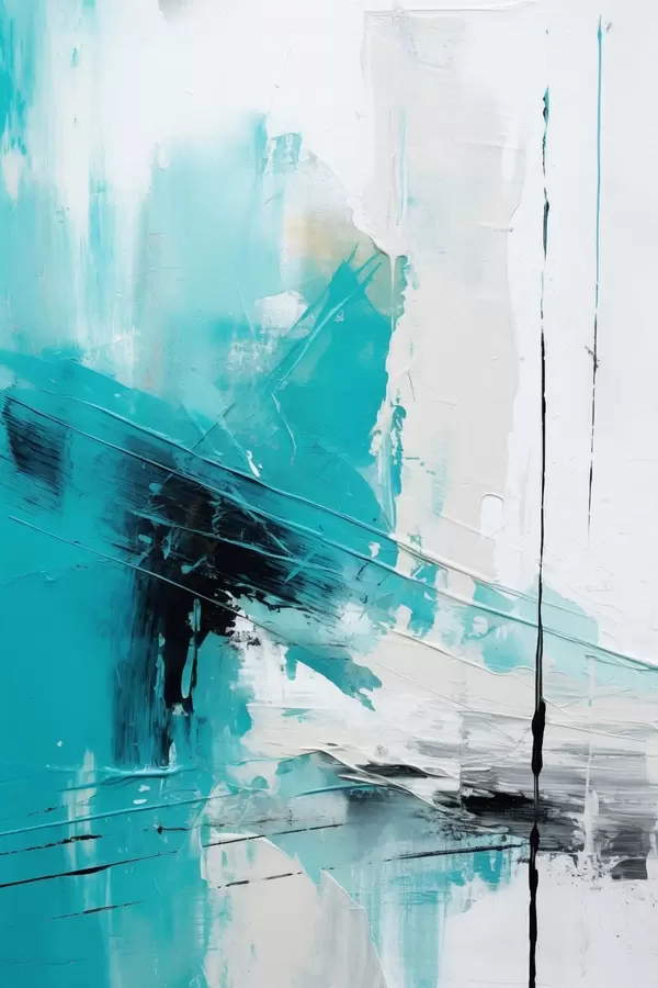 Poster Türkisfarbene Striche auf Weiß mit einem schwarzen Strich Nr f46545