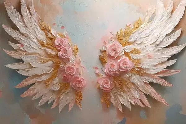Poster Flügel in den Farben Gelb und Rosa f46551