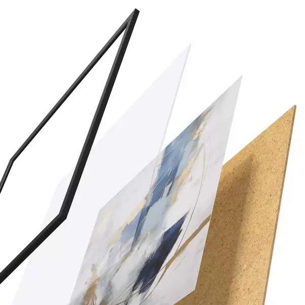 Das Poster besteht aus einem Rahmen, Plexiglas, einem gedruckten Bild und einer Rückwand aus Spanplatten. Dank der Halterungen auf der Rückseite kann das Poster sofort an die Wand gehängt werden.