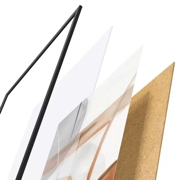 Das Poster besteht aus einem Rahmen, Plexiglas, einem gedruckten Bild und einer Rückwand aus Spanplatten. Dank der Halterungen auf der Rückseite kann das Poster sofort an die Wand gehängt werden.