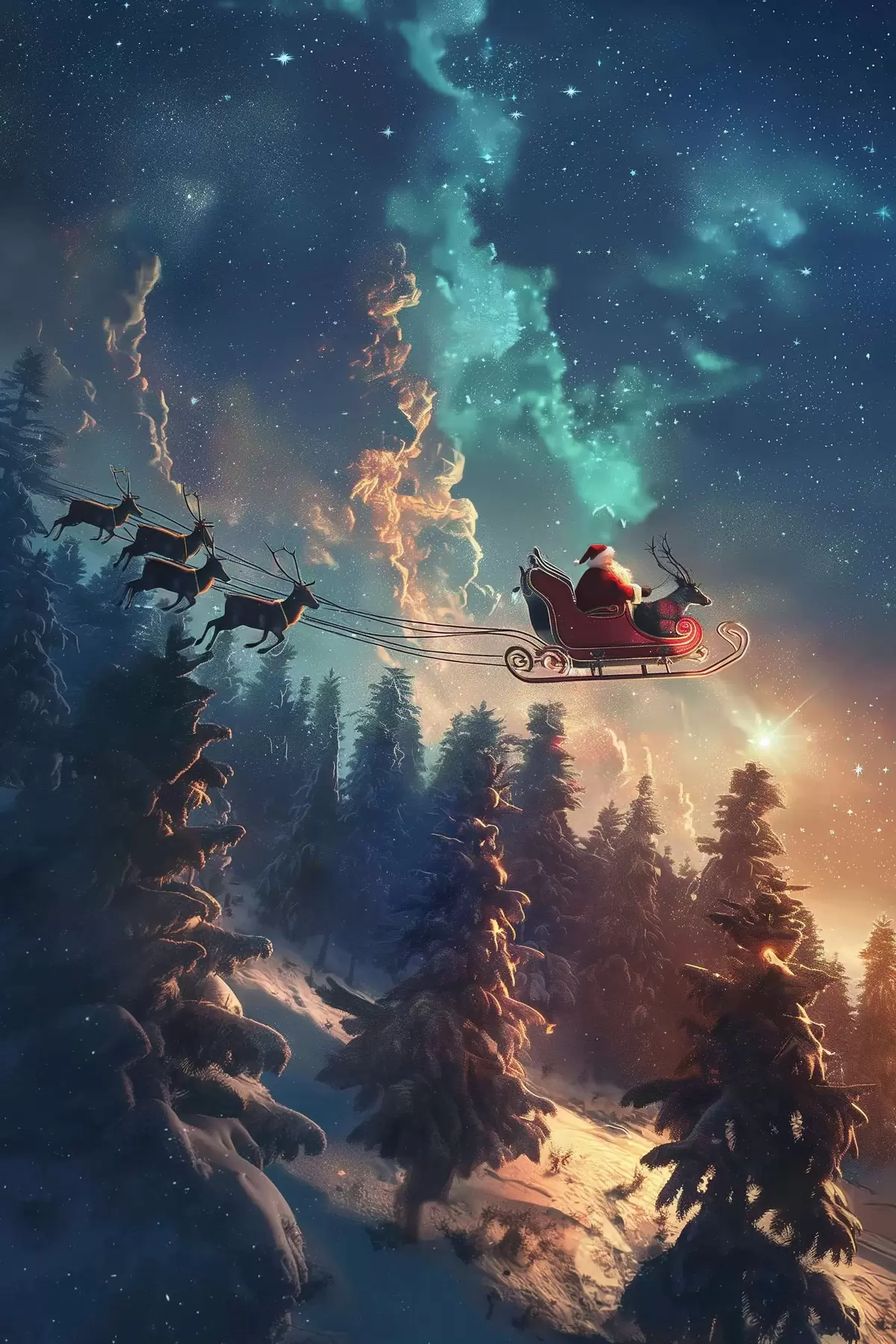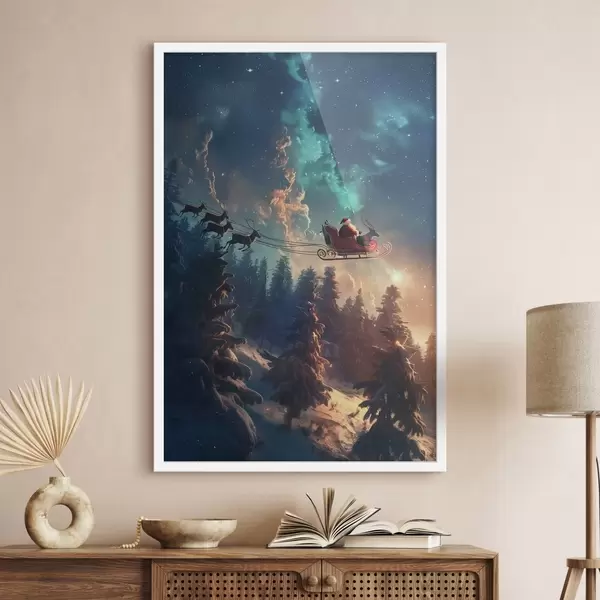 Poster Weihnachtsmann auf Rentier Nr f46602