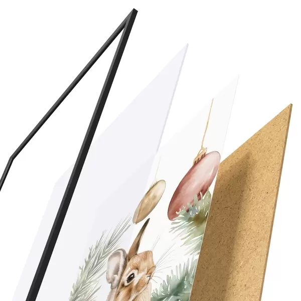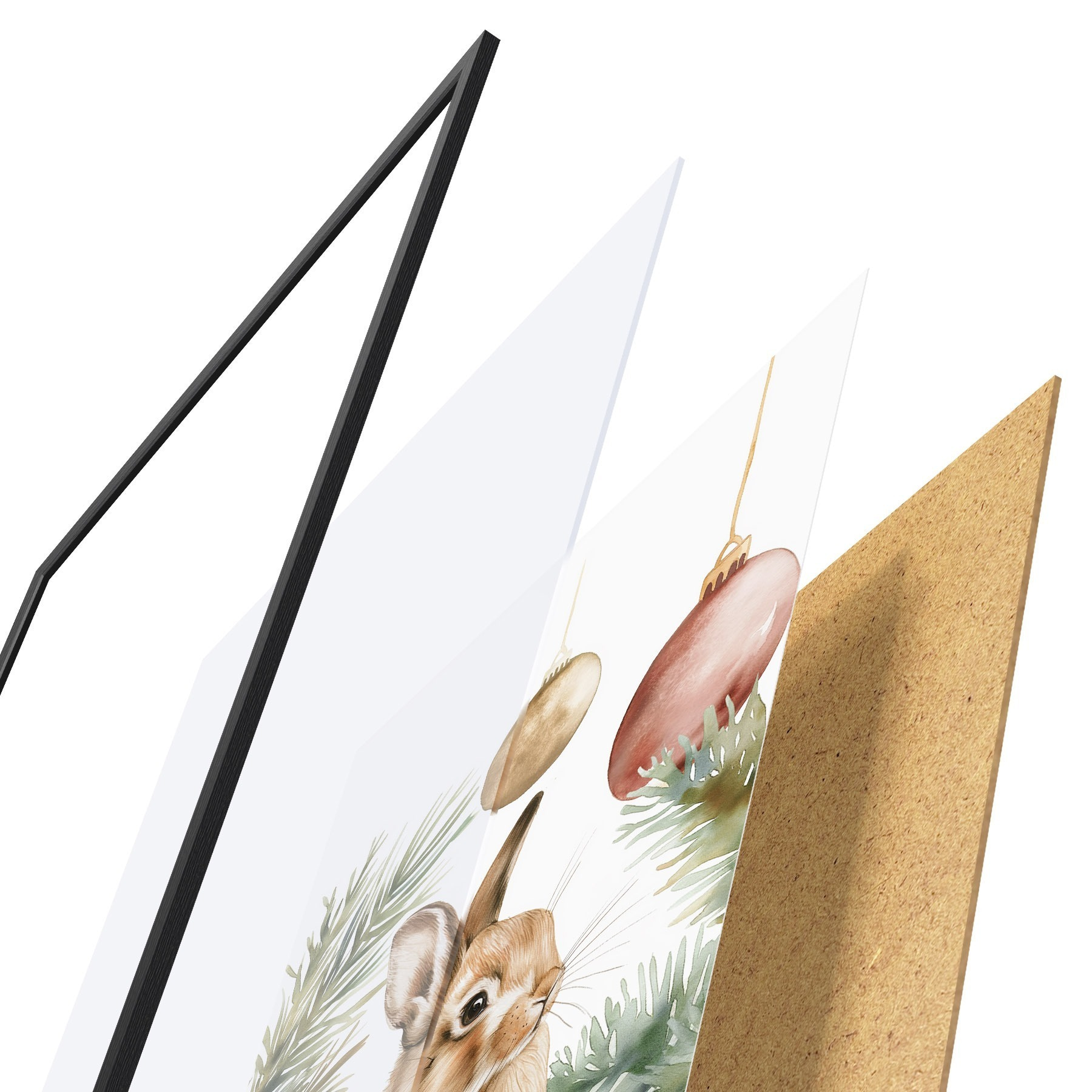 Das Poster besteht aus einem Rahmen, Plexiglas, einem gedruckten Bild und einer Rückwand aus Spanplatten. Dank der Halterungen auf der Rückseite kann das Poster sofort an die Wand gehängt werden.