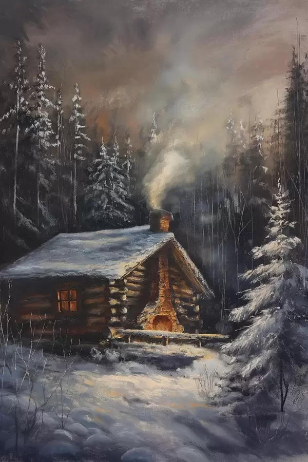 Poster Hütte in einem Winterwald Nr f46606