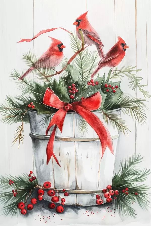 Poster Vögel auf einem Weihnachtstopf Nr f46607