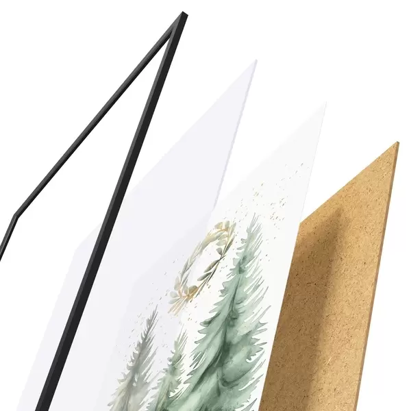 Das Poster besteht aus einem Rahmen, Plexiglas, einem gedruckten Bild und einer Rückwand aus Spanplatten. Dank der Halterungen auf der Rückseite kann das Poster sofort an die Wand gehängt werden.
