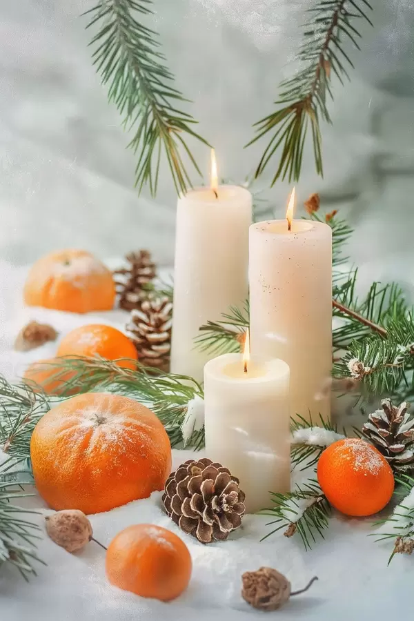 Poster Kerzen, Mandarinen und Tannenzapfen Nr f46615