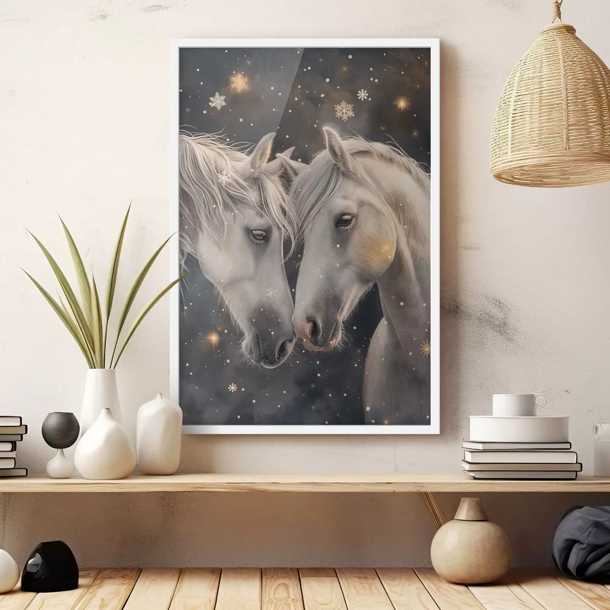 Sie können das Bild an Schrauben aufhängen. Dazu legen wir unseren Bildern Halterungen bei, mit denen Sie das Bild bequem aufhängen können.