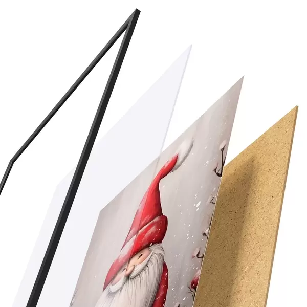 Das Poster besteht aus einem Rahmen, Plexiglas, einem gedruckten Bild und einer Rückwand aus Spanplatten. Dank der Halterungen auf der Rückseite kann das Poster sofort an die Wand gehängt werden.