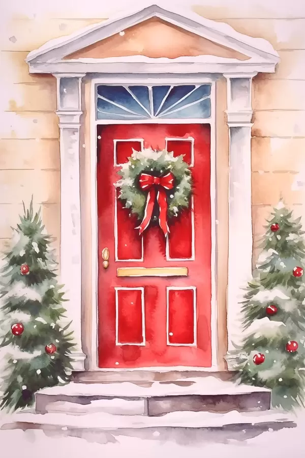 Poster Weihnachts-Tür mit Kranz f46622