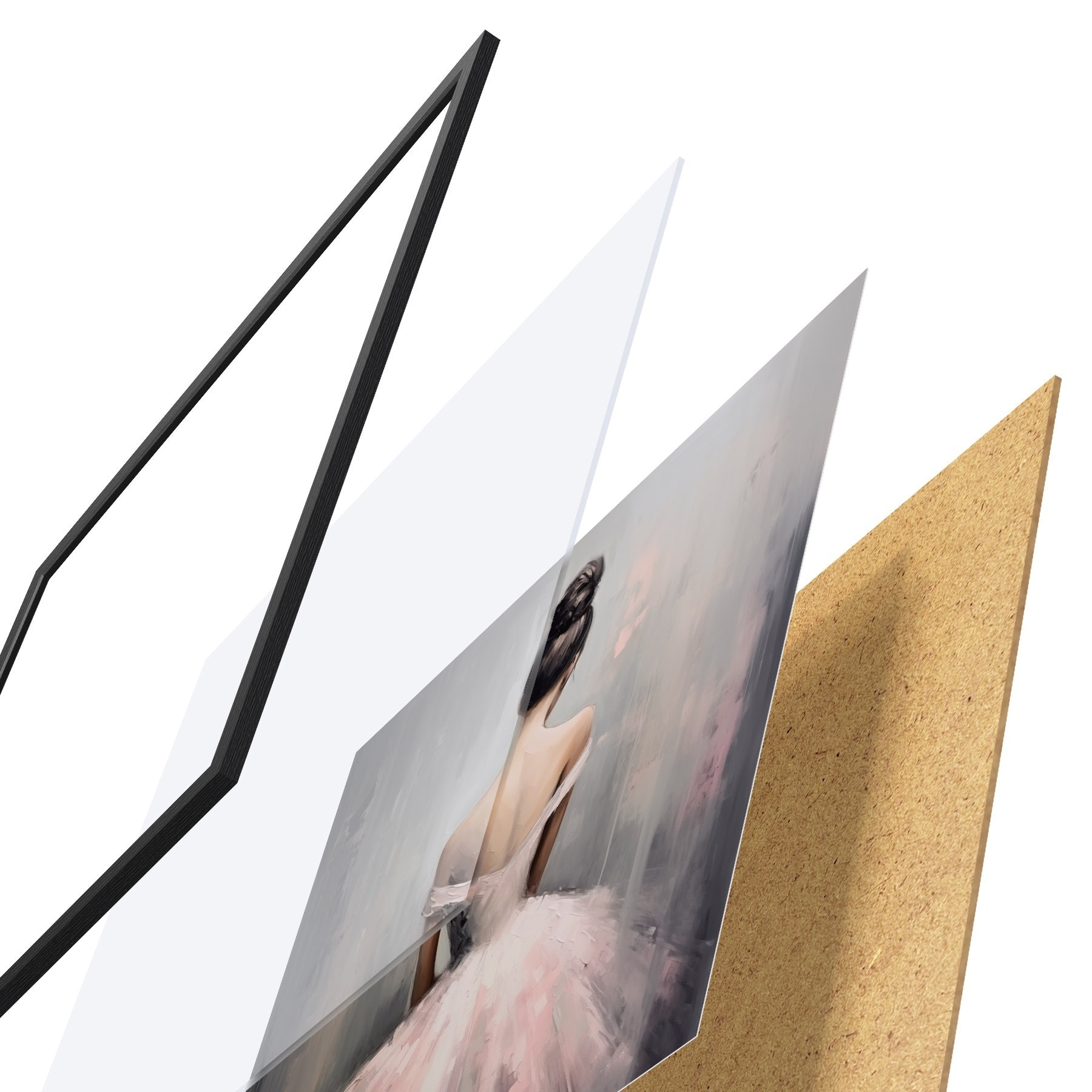 Das Poster besteht aus einem Rahmen, Plexiglas, einem gedruckten Bild und einer Rückwand aus Spanplatten. Dank der Halterungen auf der Rückseite kann das Poster sofort an die Wand gehängt werden.