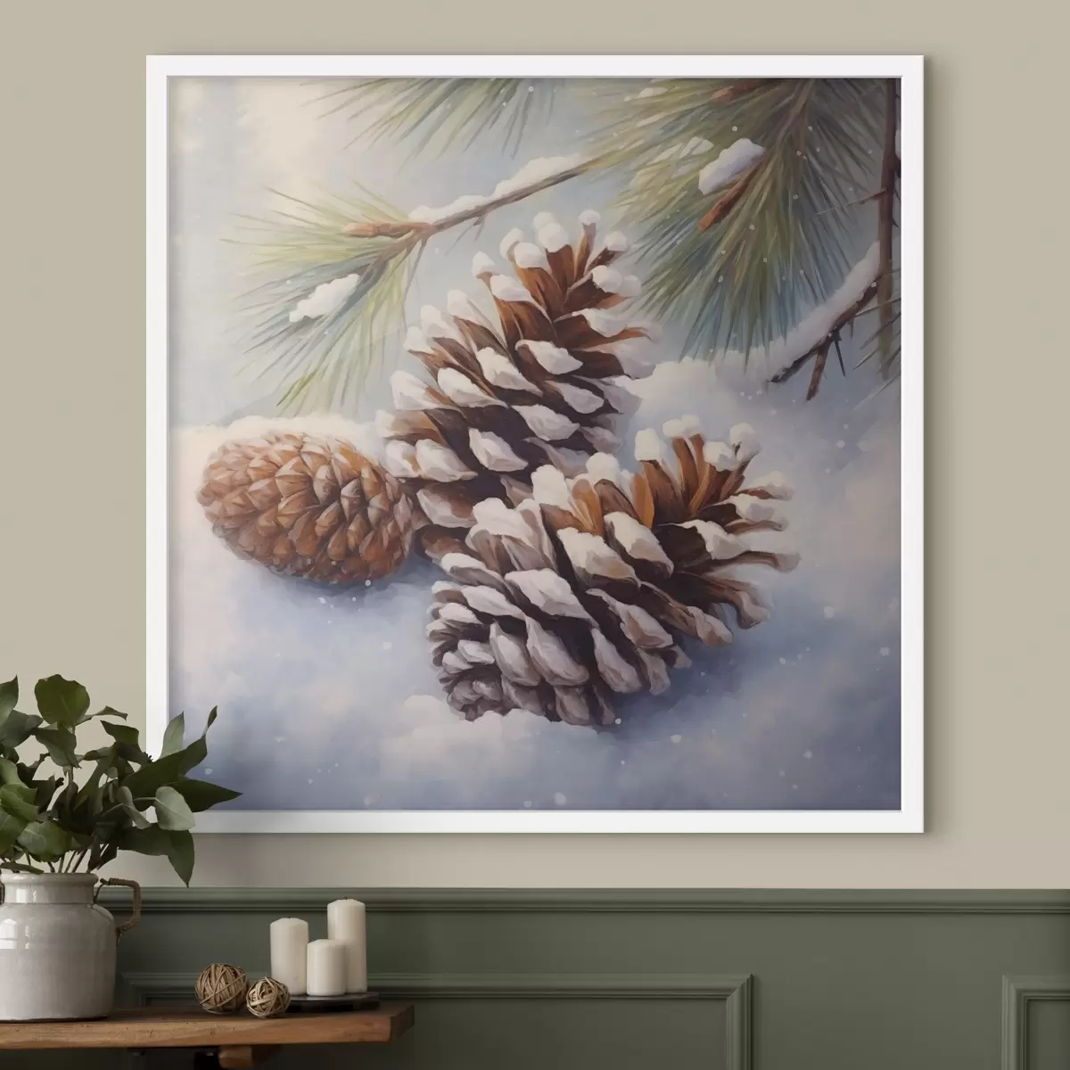 Poster Schneebedeckte Tannenzapfen und Äste Nr f46631