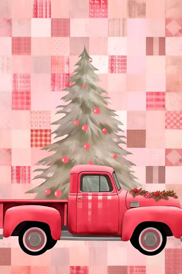 Poster Retro-Lkw mit Weihnachtsbaum f46632