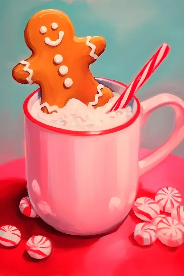 Poster Lebkuchenmann in einer Tasse heißer Schokolade Nr f46635