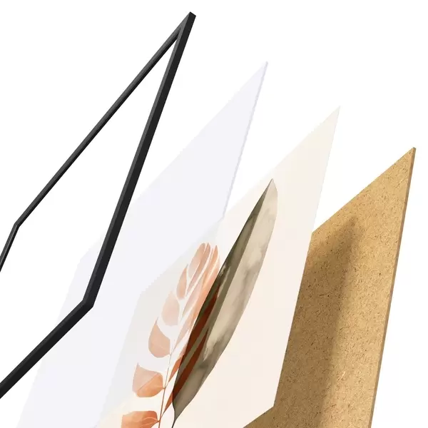 Das Poster besteht aus einem Rahmen, Plexiglas, einem gedruckten Bild und einer Rückwand aus Spanplatten. Dank der Halterungen auf der Rückseite kann das Poster sofort an die Wand gehängt werden.