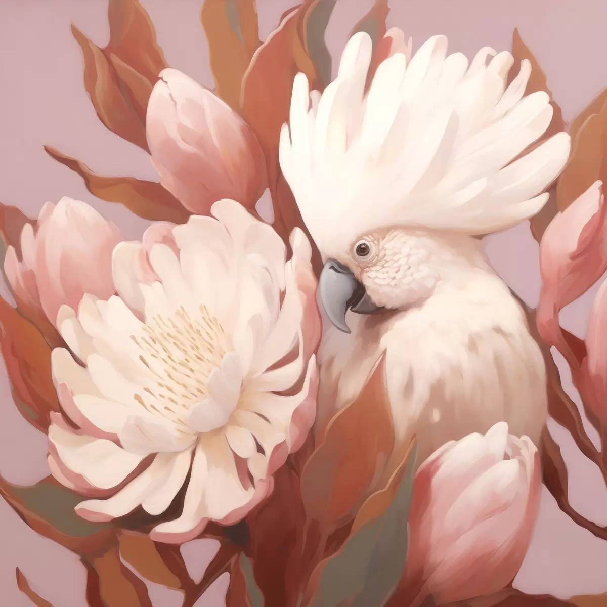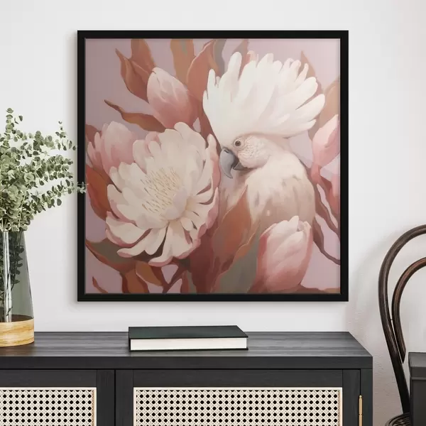 Poster Abstrakter künstlerischer Vogel in einer Blumenkomposition f46667
