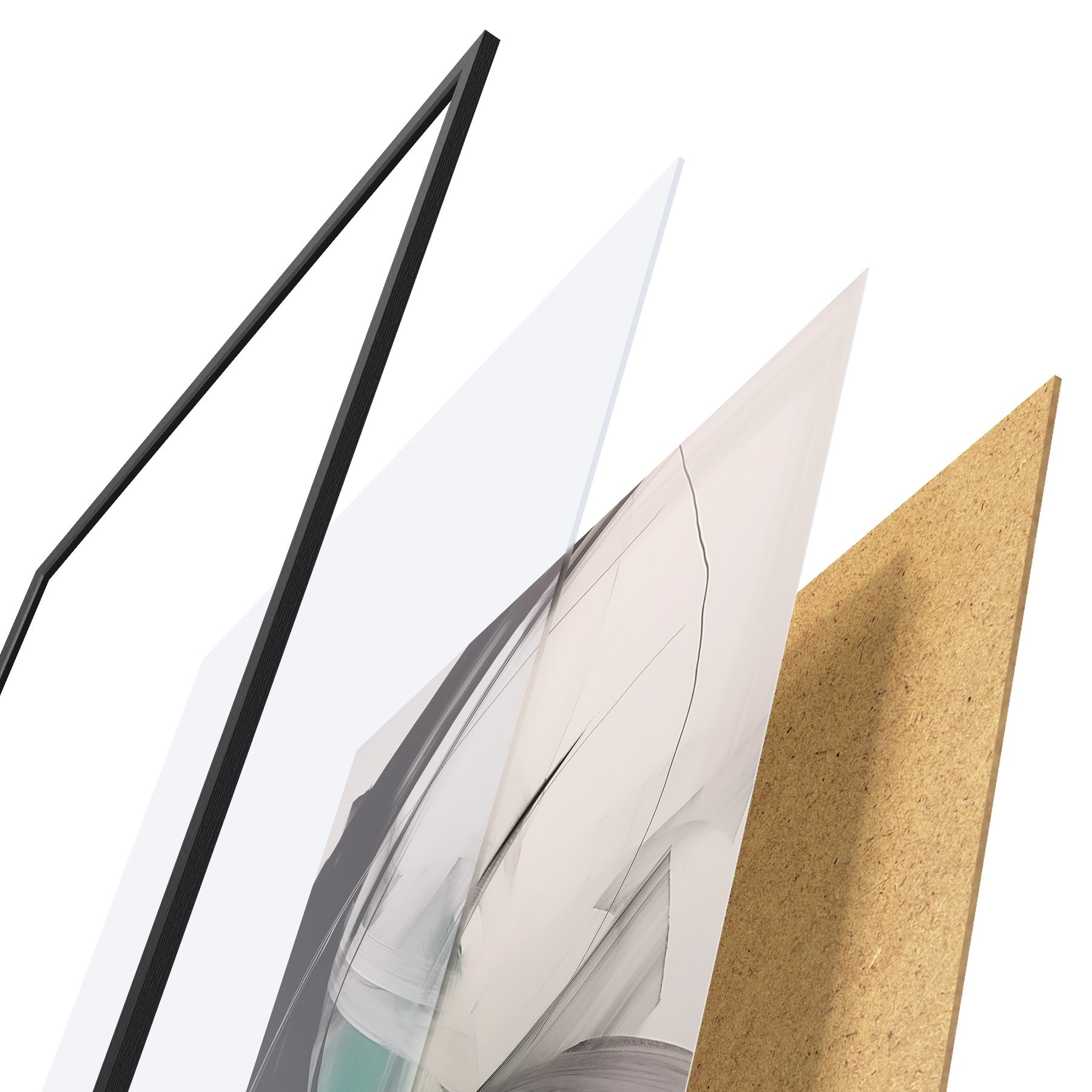 Das Poster besteht aus einem Rahmen, Plexiglas, einem gedruckten Bild und einer Rückwand aus Spanplatten. Dank der Halterungen auf der Rückseite kann das Poster sofort an die Wand gehängt werden.