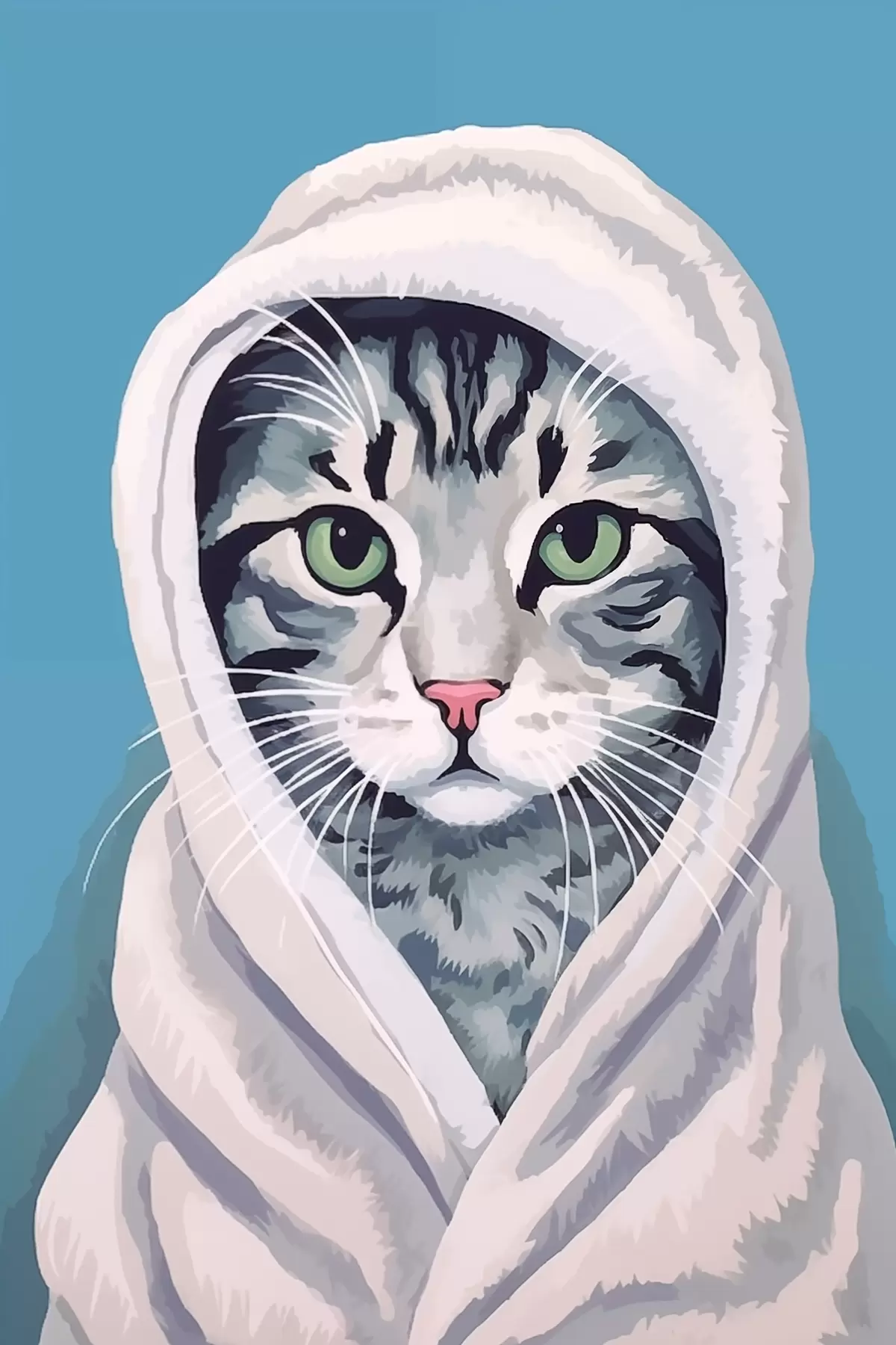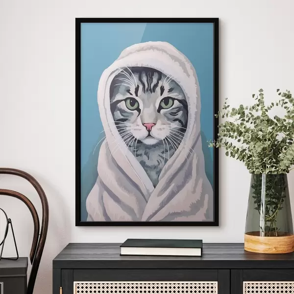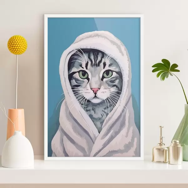 Poster Gestreifte Katze in einem weißen Handtuch Nr f46740