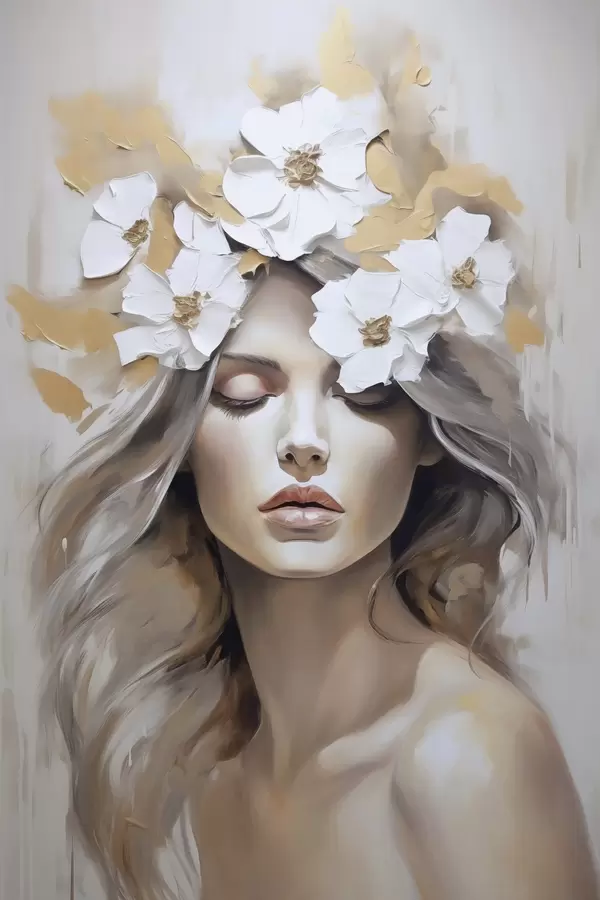 Poster Abstraktes Porträt eines Mädchens mit Blumen Nr f46757