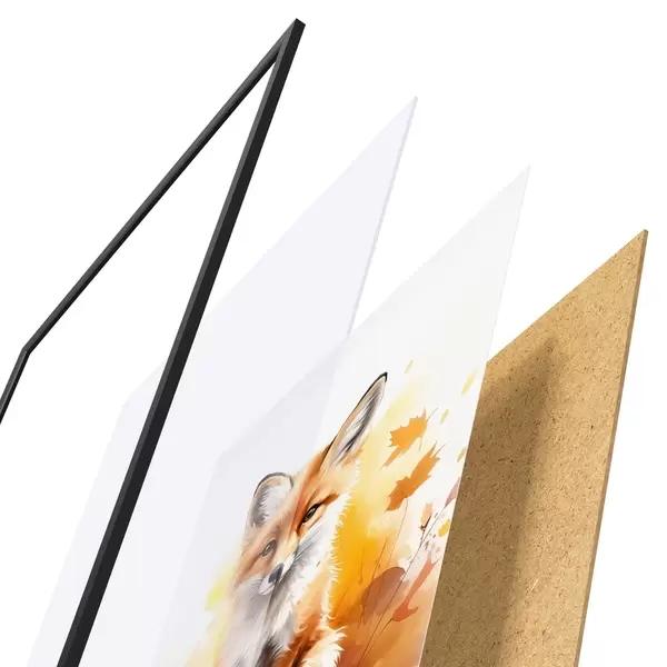 Das Poster besteht aus einem Rahmen, Plexiglas, einem gedruckten Bild und einer Rückwand aus Spanplatten. Dank der Halterungen auf der Rückseite kann das Poster sofort an die Wand gehängt werden.