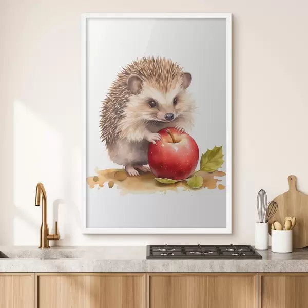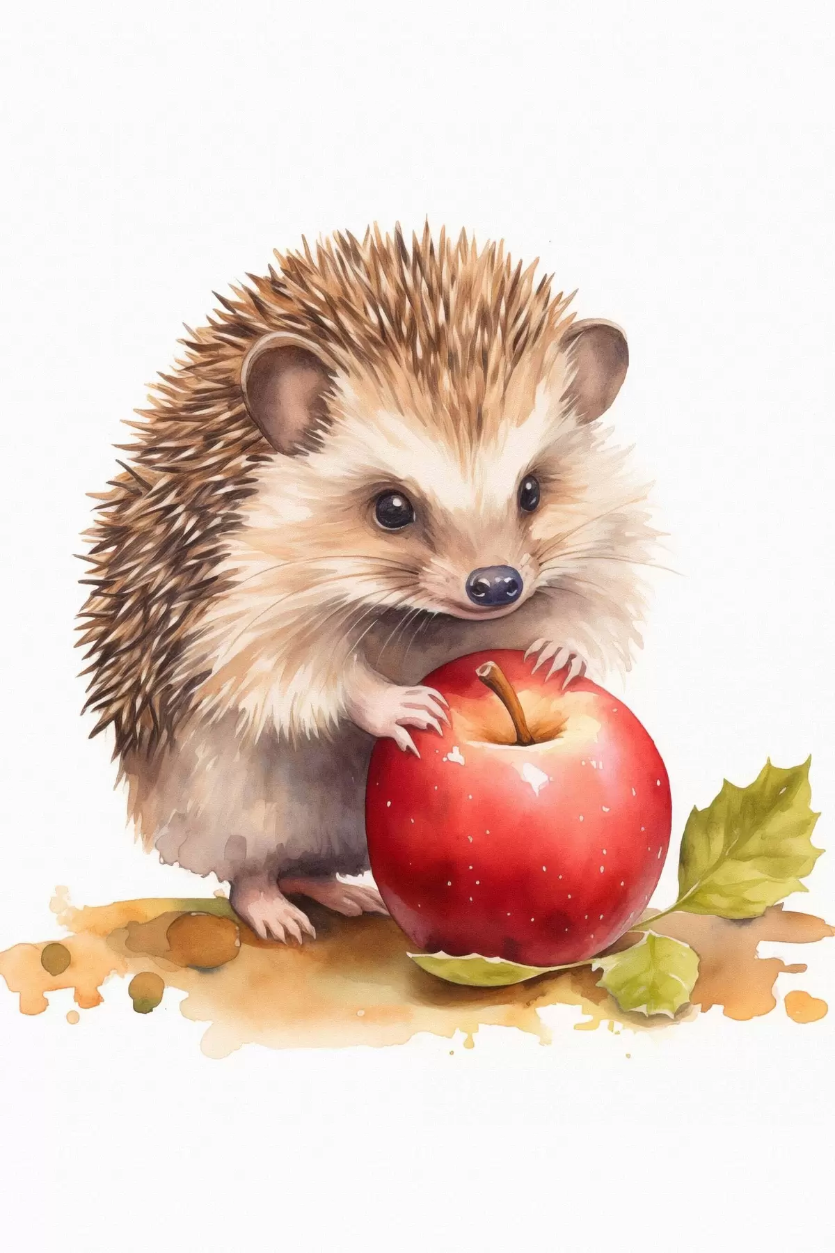 Poster Igel und Apfel, Aquarellimitation Nr f46769