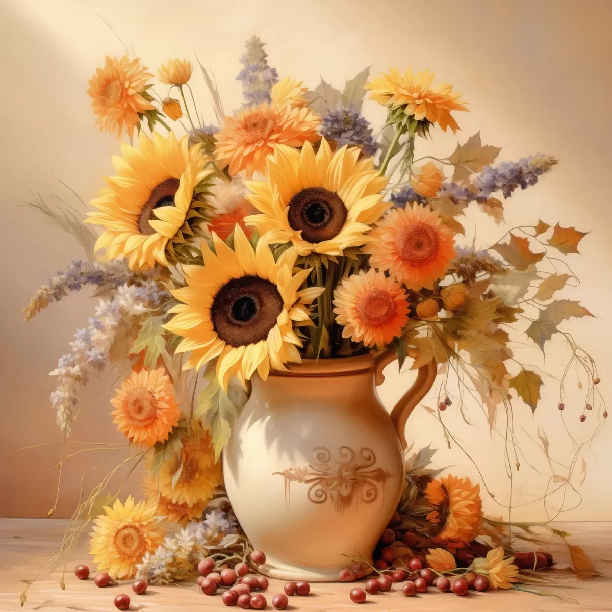 Poster Herbstkomposition, Blumen in einer Vase f46774
