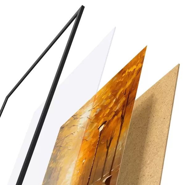 Das Poster besteht aus einem Rahmen, Plexiglas, einem gedruckten Bild und einer Rückwand aus Spanplatten. Dank der Halterungen auf der Rückseite kann das Poster sofort an die Wand gehängt werden.