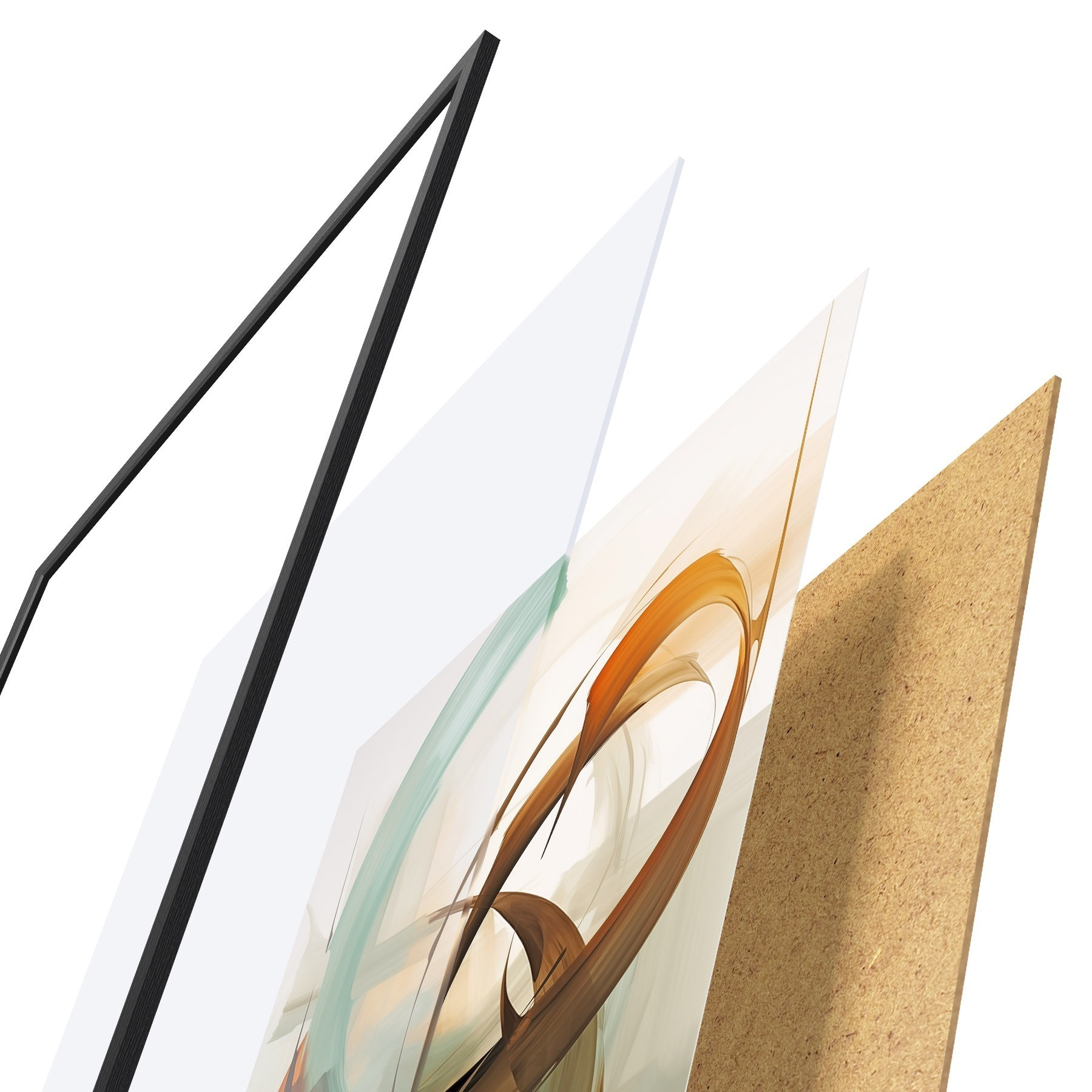 Das Poster besteht aus einem Rahmen, Plexiglas, einem gedruckten Bild und einer Rückwand aus Spanplatten. Dank der Halterungen auf der Rückseite kann das Poster sofort an die Wand gehängt werden.