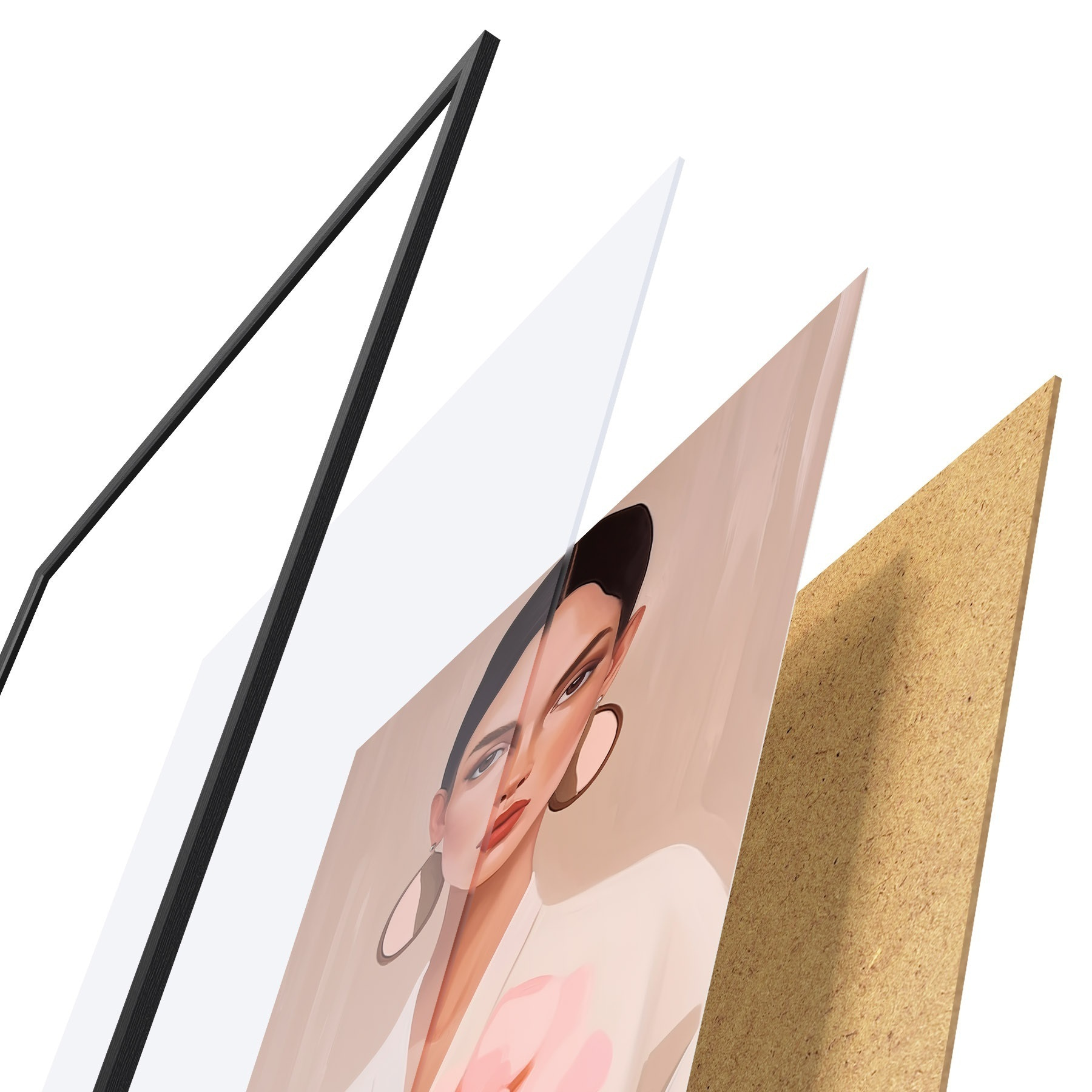 Das Poster besteht aus einem Rahmen, Plexiglas, einem gedruckten Bild und einer Rückwand aus Spanplatten. Dank der Halterungen auf der Rückseite kann das Poster sofort an die Wand gehängt werden.