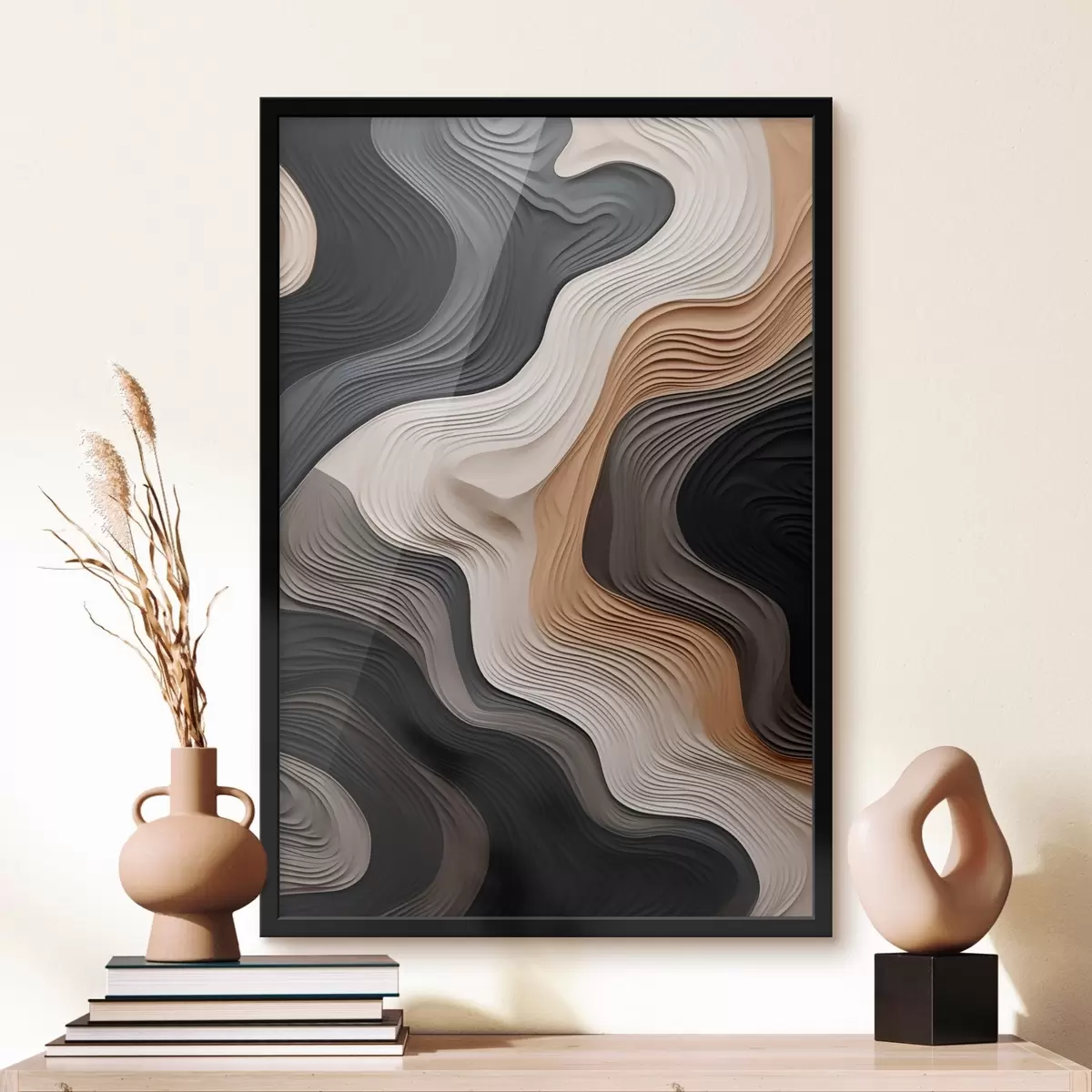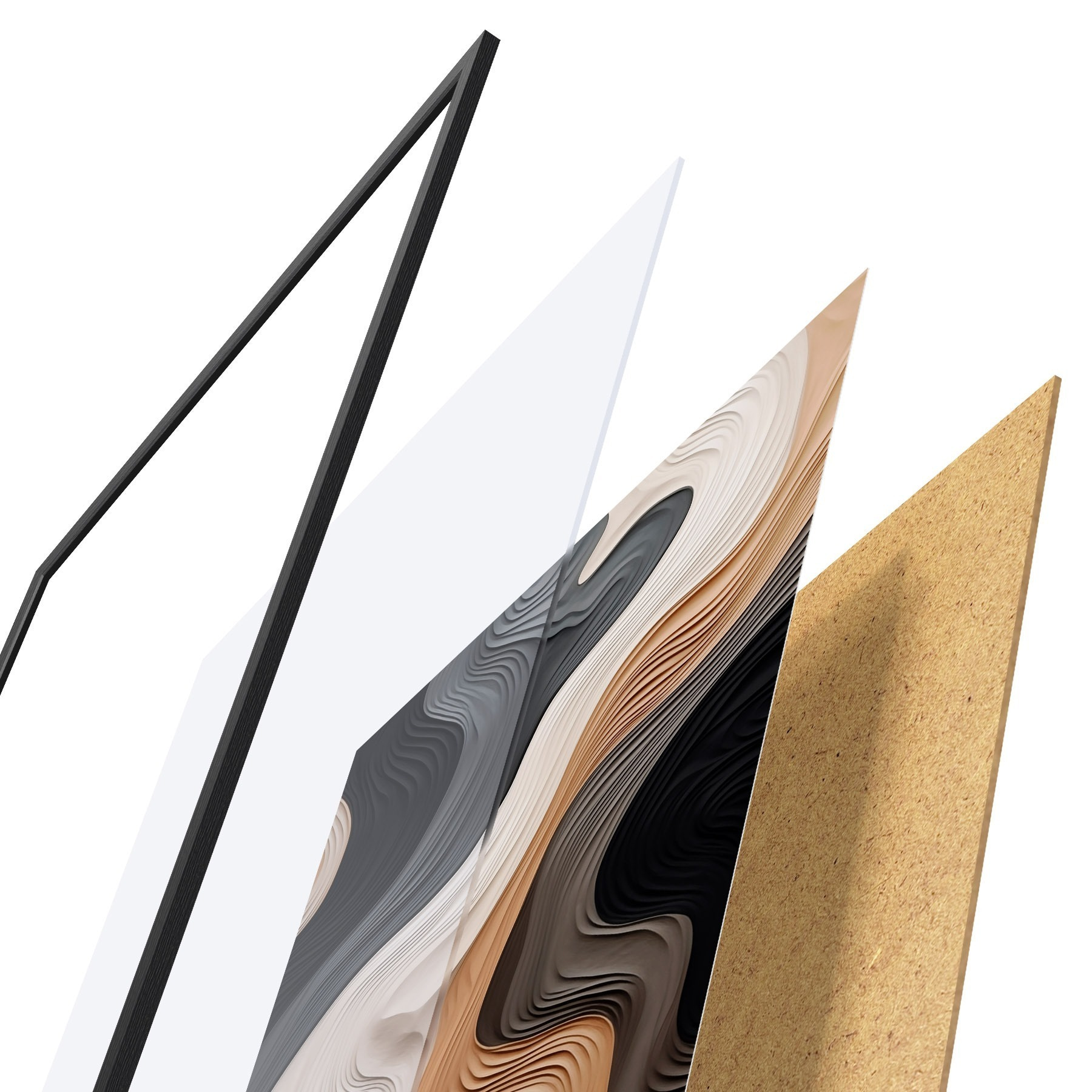 Das Poster besteht aus einem Rahmen, Plexiglas, einem gedruckten Bild und einer Rückwand aus Spanplatten. Dank der Halterungen auf der Rückseite kann das Poster sofort an die Wand gehängt werden.