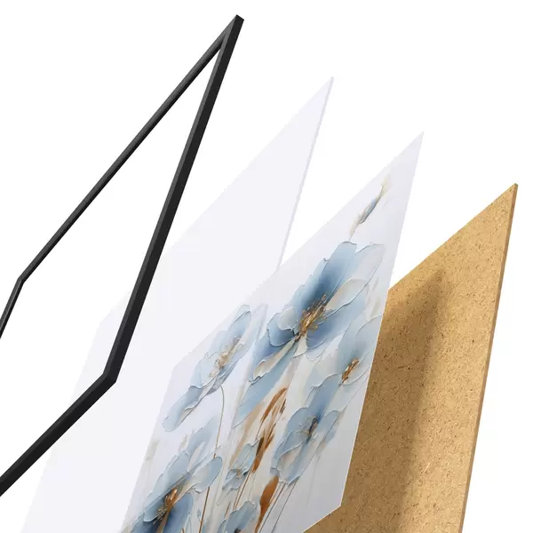Das Poster besteht aus einem Rahmen, Plexiglas, einem gedruckten Bild und einer Rückwand aus Spanplatten. Dank der Halterungen auf der Rückseite kann das Poster sofort an die Wand gehängt werden.