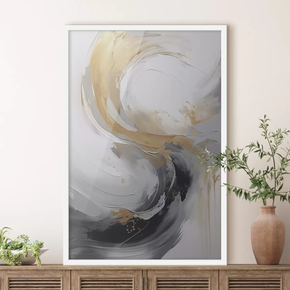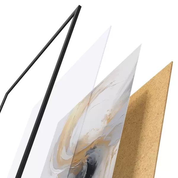 Das Poster besteht aus einem Rahmen, Plexiglas, einem gedruckten Bild und einer Rückwand aus Spanplatten. Dank der Halterungen auf der Rückseite kann das Poster sofort an die Wand gehängt werden.