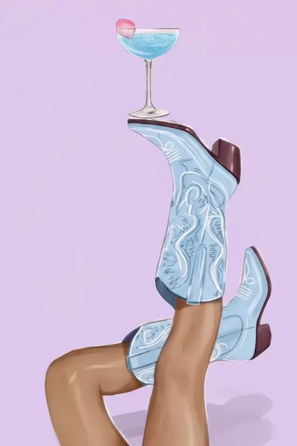 Poster Blaue Stiefel mit einem Glas Nr f46845