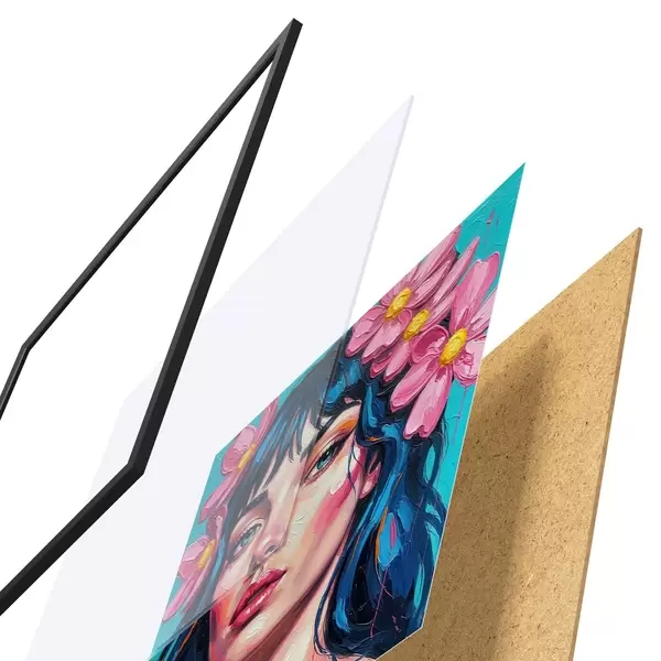 Das Poster besteht aus einem Rahmen, Plexiglas, einem gedruckten Bild und einer Rückwand aus Spanplatten. Dank der Halterungen auf der Rückseite kann das Poster sofort an die Wand gehängt werden.