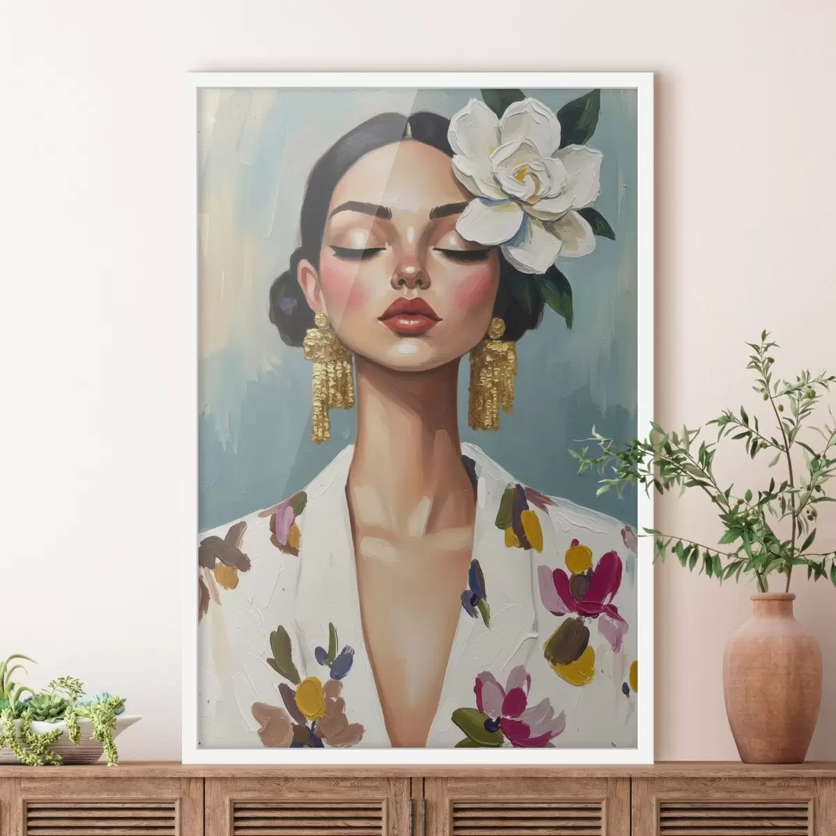 Poster Mädchen mit einer Blume im Haar Nr f46852