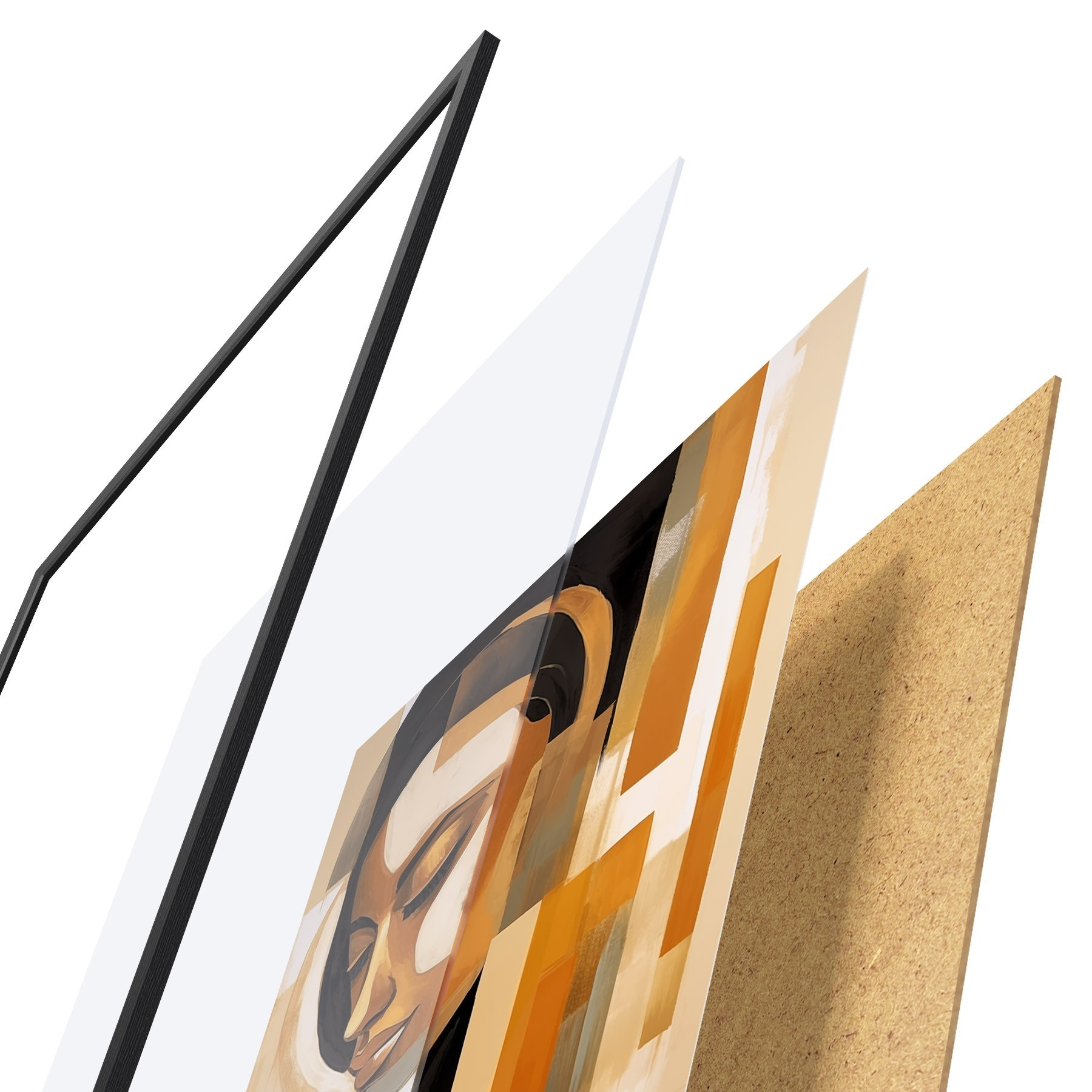 Das Poster besteht aus einem Rahmen, Plexiglas, einem gedruckten Bild und einer Rückwand aus Spanplatten. Dank der Halterungen auf der Rückseite kann das Poster sofort an die Wand gehängt werden.