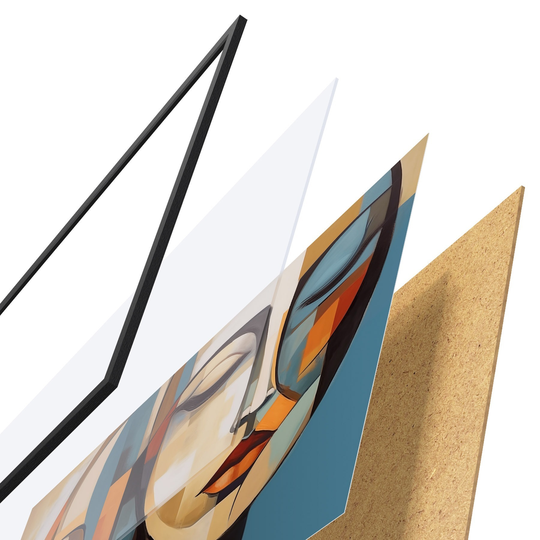 Das Poster besteht aus einem Rahmen, Plexiglas, einem gedruckten Bild und einer Rückwand aus Spanplatten. Dank der Halterungen auf der Rückseite kann das Poster sofort an die Wand gehängt werden.